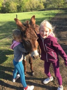 Passez un moment en famille avec nos animaux de la ferme! Poneys, ânes, chien.