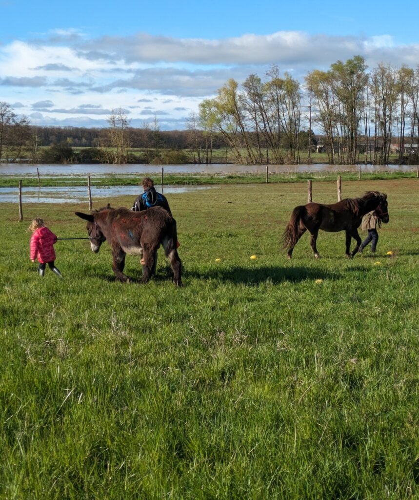 Nous alternerons entre 2 balades: le tour du plan d’eau de saint-genou ou une balade en forêt en face de la ferme (cette option sera privilégié les journées chaudes!)